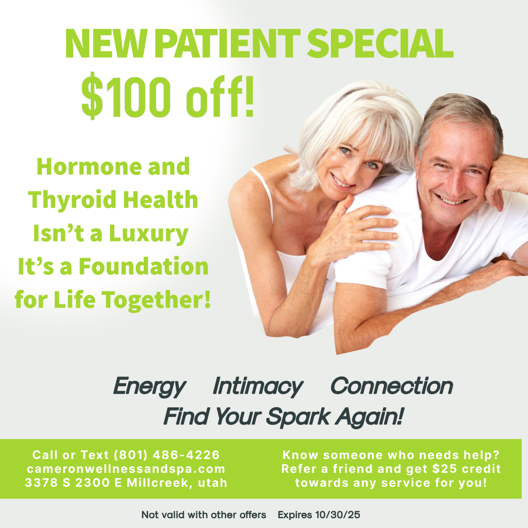 Our wellness clinic and spa is located at 3378 South 2300 East in Salt Lake City. We are open Monday – Friday from 9AM to 5PM and on Saturday from 10AM to 4PM. Call us today at (801) 486-4226 to schedule your appointment with Dr. Cameron.
